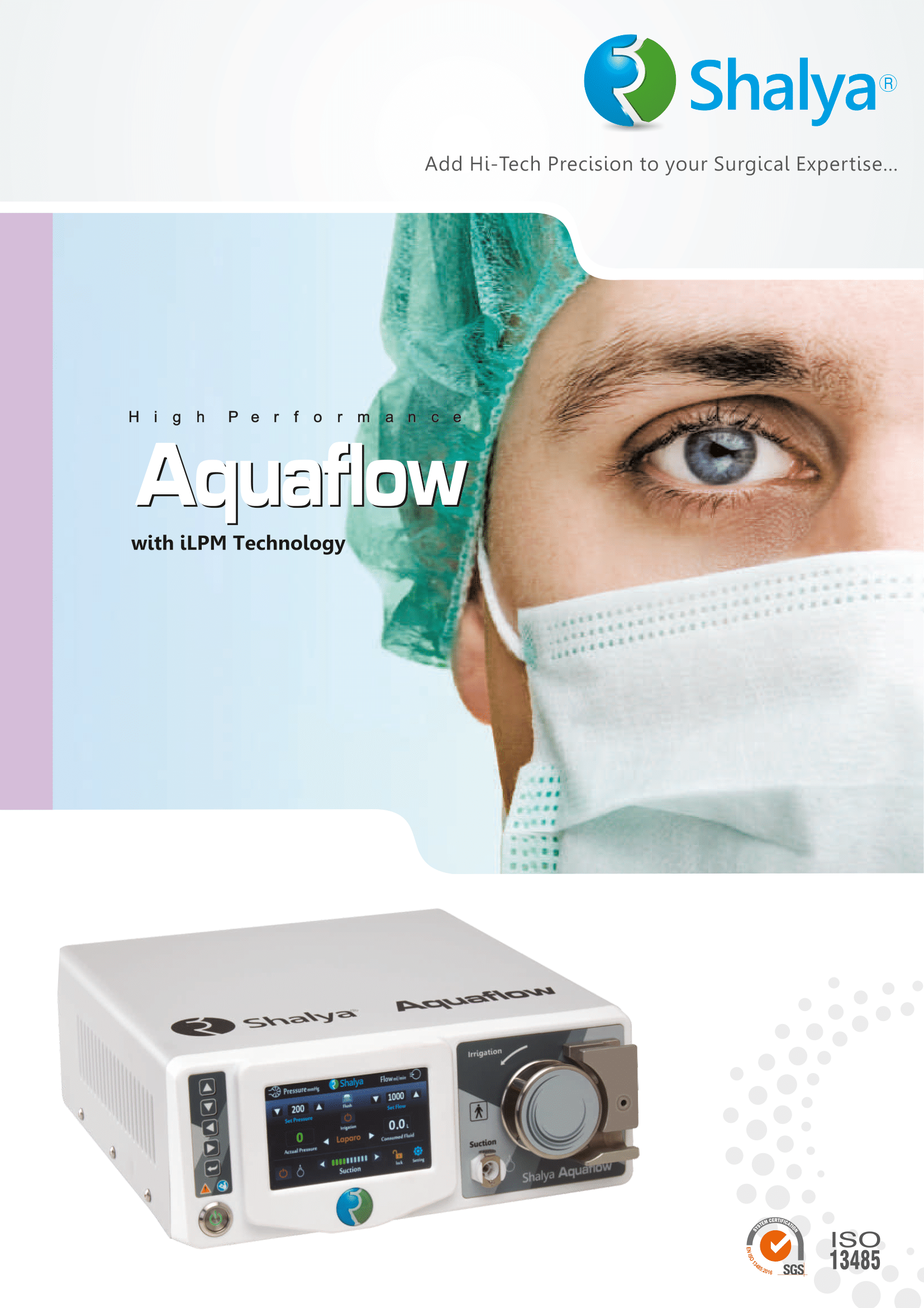 AQUAFLOW HAS FOUR APPLICATION: ARHTROSCOPY, LAPAROSCOPY, UROLOGY, HYSTEROSCOPY, ENDOSCOPY AND TURBO MODE. REAL TIME FLOW AND PRESSURE MONITORING SYSTEM. PRIMING AND FLUSH AVAILABLE.RENEWABLE AND AUTOCLAVABLE TUBING. TOUCH SCREEN FOR BETTER USER INTERFACE. LOW NOISE BUILT IN SUCTION.
